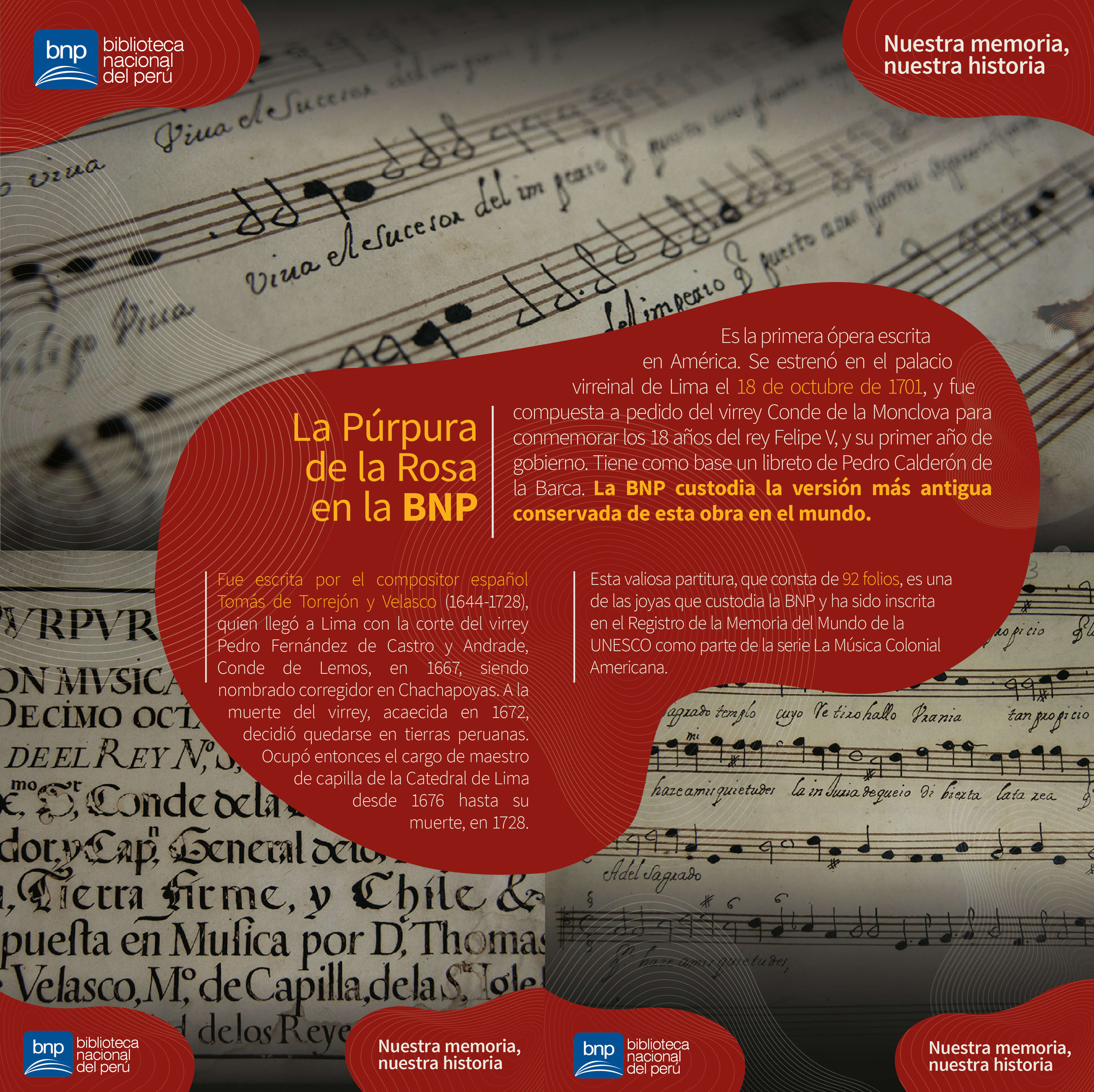 ¿Conoces La Púrpura de la Rosa? Compuesta por el español Tomás de Torrejón y Velasco, es la primera ópera escrita en América y es una de las joyas de la BNP.